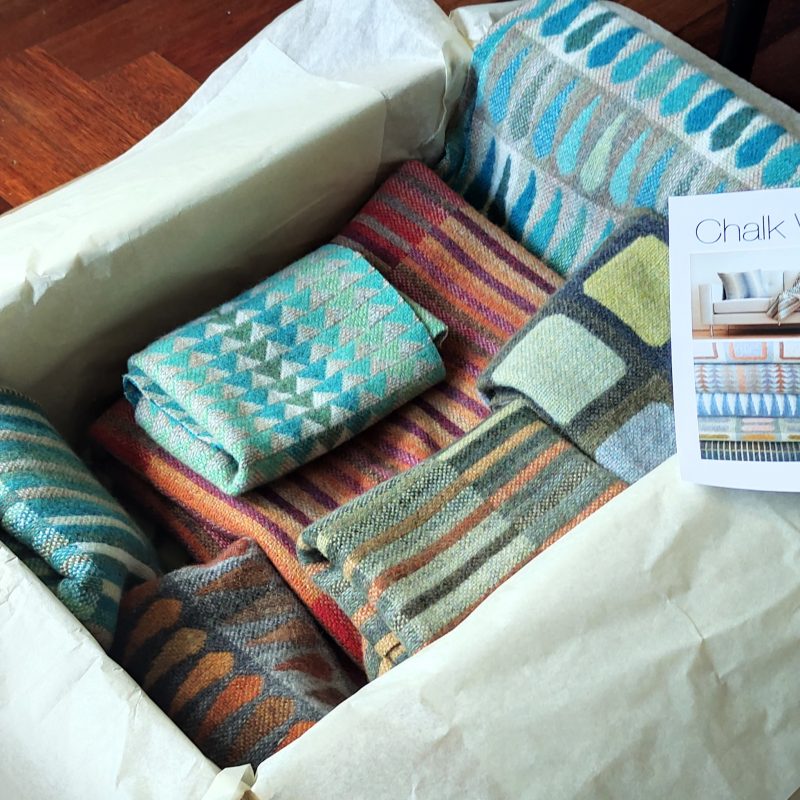 Chalk Wovens is a Brighton-based studio creating contemporary woven products including throws, cushions, lampshades, and hotties — all designed and made in the UK.