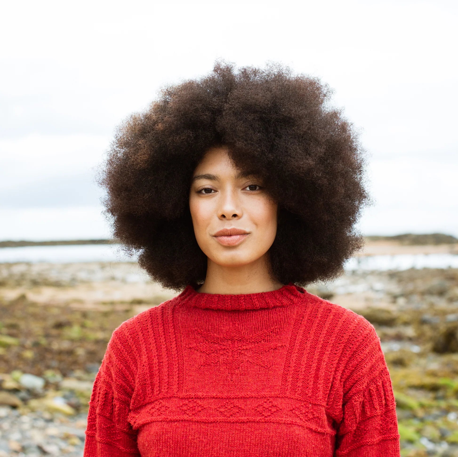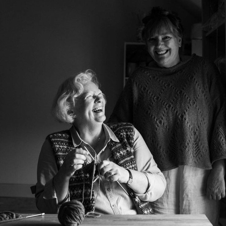 Nearly 40 years ago, Di founded her studio after leaving a teaching career and settling on the Isle of Skye, where she began knitting on a semi-ruined croft. Inspired by Scotland’s coastal landscapes, her practice evolved into a lifelong exploration of stitch, colour, and texture. Sheila, the studio’s Production Manager for over a decade, joined after a long teaching career. Born into a family immersed in the wool traditions of the Scottish Borders, her passion for knitting and colourwork naturally complements Di’s creative vision.