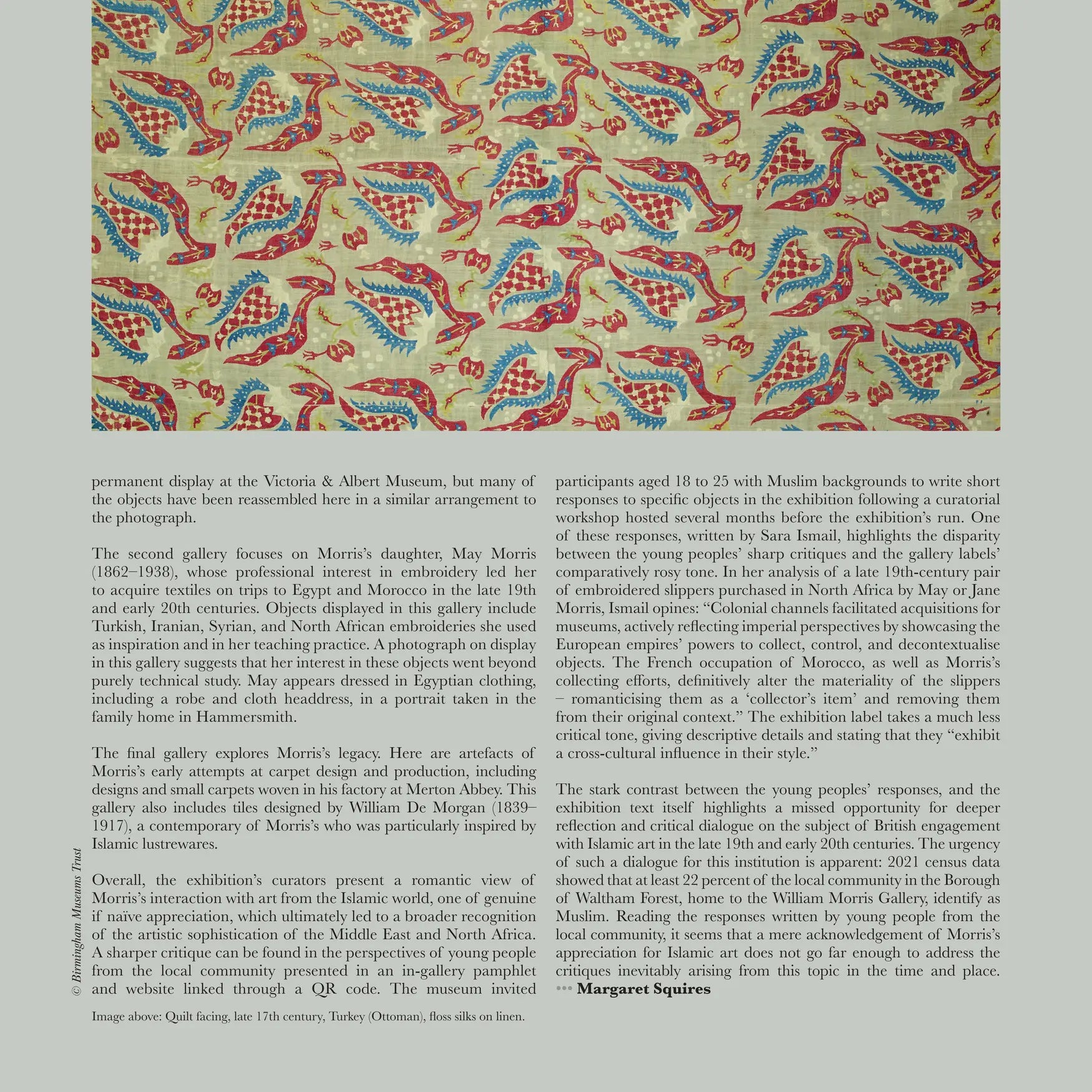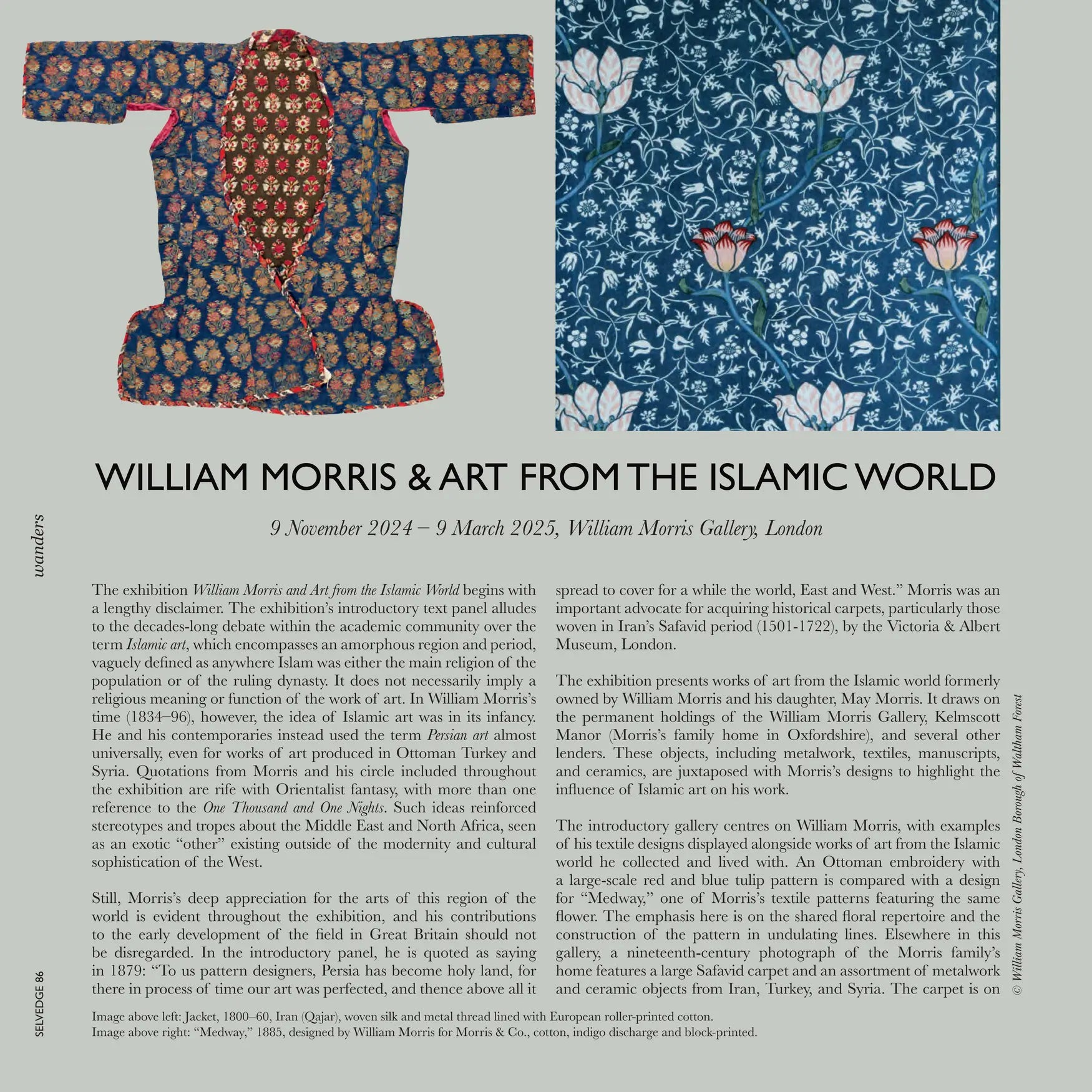 Article: "WILLIAM MORRIS & ART FROM THE ISLAMIC WORLD," Selvedge, Issue 123. Text: Margaret Squires