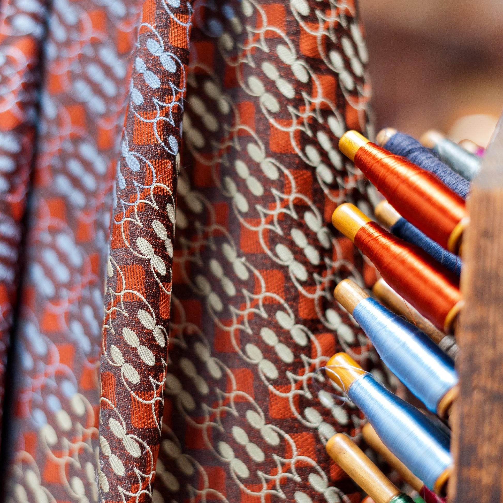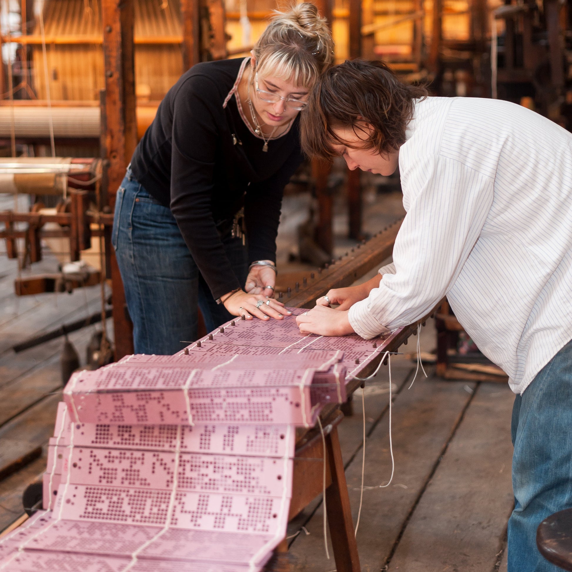 Beatrice Uprichard and Ruth Farris of Fishbone and Sycamore are the sole designers of heritage jacquard silk in the UK. They have spent three years restoring, weaving and perfecting lost skills at Paradise Mill in Macclesfield. This remarkable relic is known for its unique collection of Victorian jacquard handlooms - here time has stood still since the Industrial Revolution.