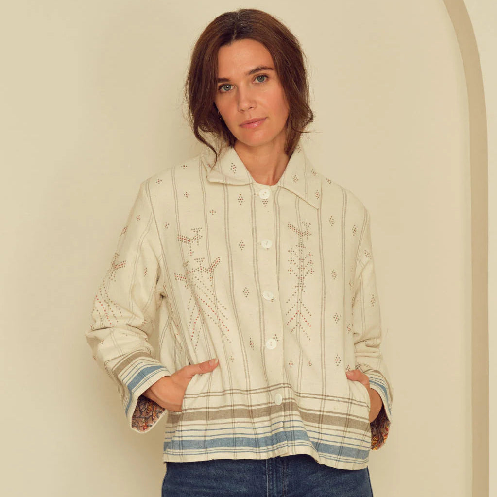 Founded by Guni Brar, Loom & Things is a London based brand that creates limited edition collections using traditional Indian handmade and vintage textiles. The uniqueness of the brand lies in the interplay of artisanal textiles to create timeless pieces that can be passed down generations. She is supported and advised by her mother, Anupinder Brar, who runs their in-house weaving centre to develop traditional textiles of Punjab, North India. The duo are on a mission to revive and preserve Punjabi craft and culture by empowering women artisans from their homeland.