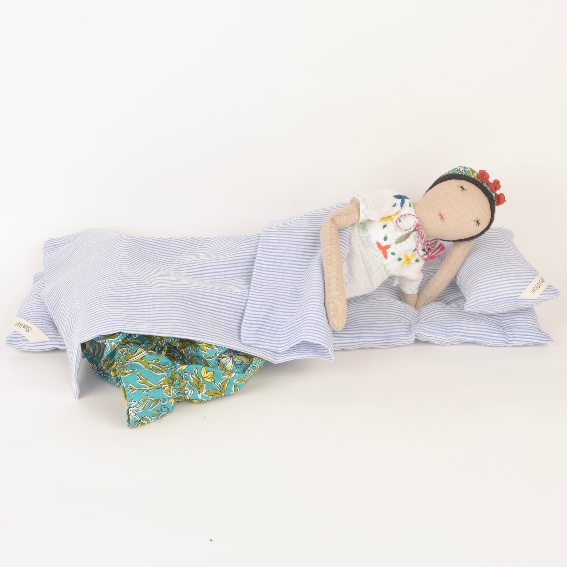 Handcrafted from waste fabric by Afghan women refugees, Frida stands as a symbol of empowerment and renewal. She reminds us of the strength found in creativity and the importance of uplifting voices through meaningful craft.