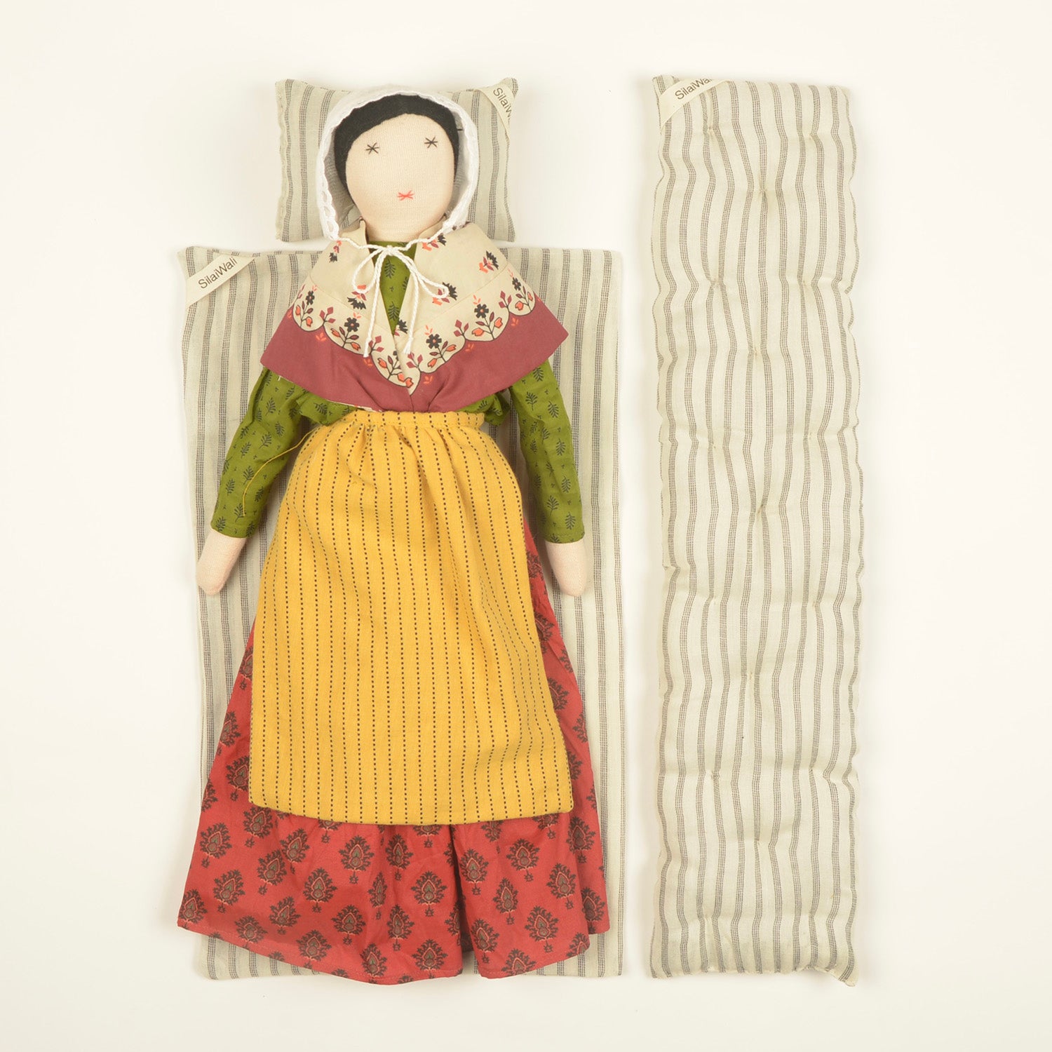 Materials: Cotton doll, polyfill filling, woollen hair, cotton bedding, paper box