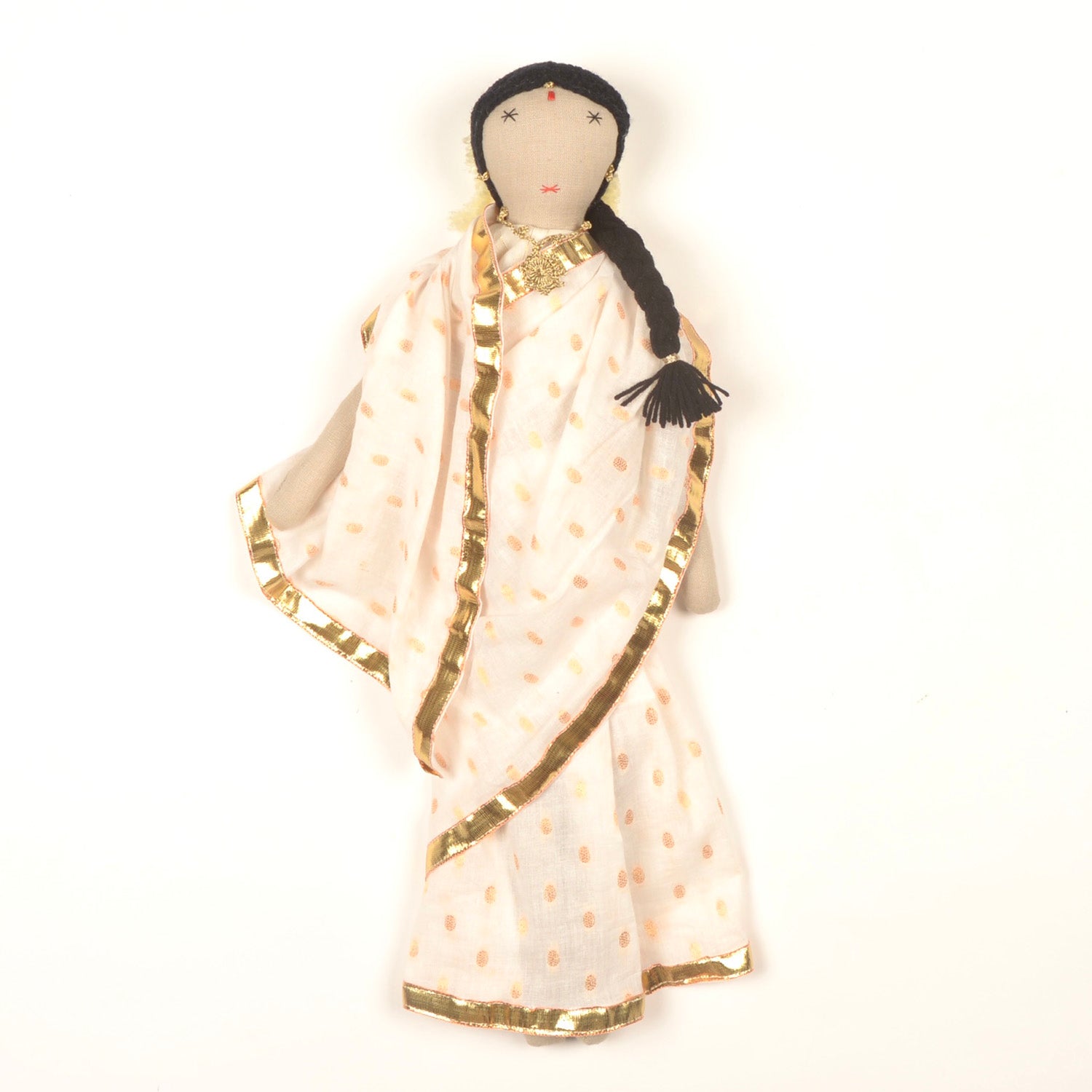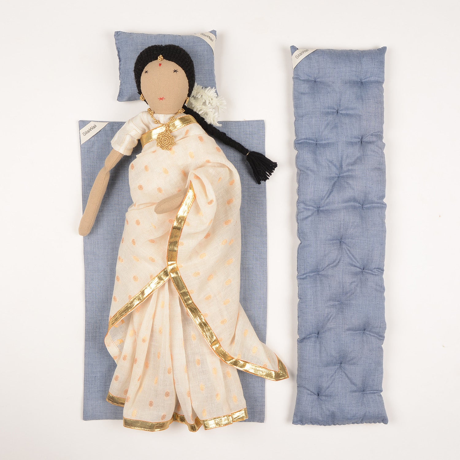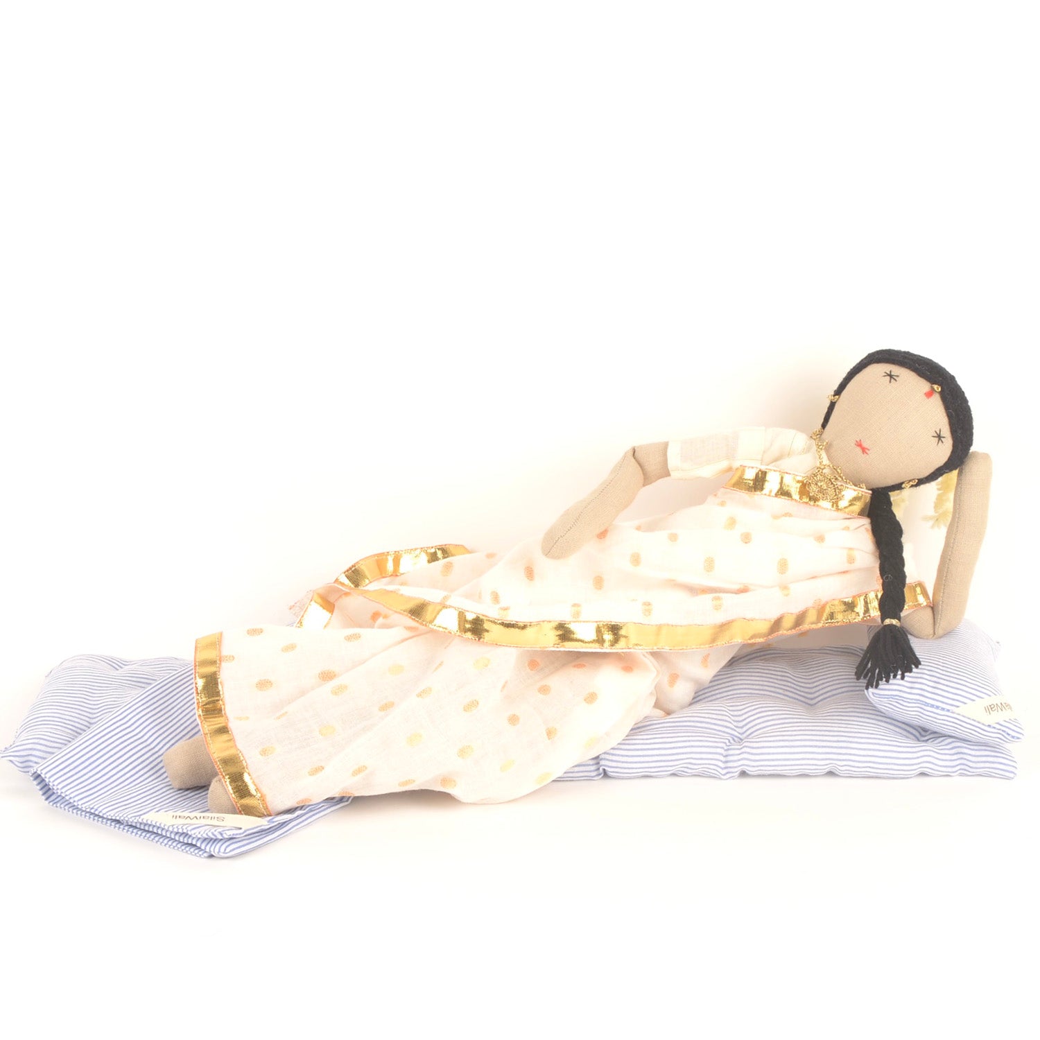 Materials: Cotton doll, polyfill filling, woollen hair, cotton bedding, paper box