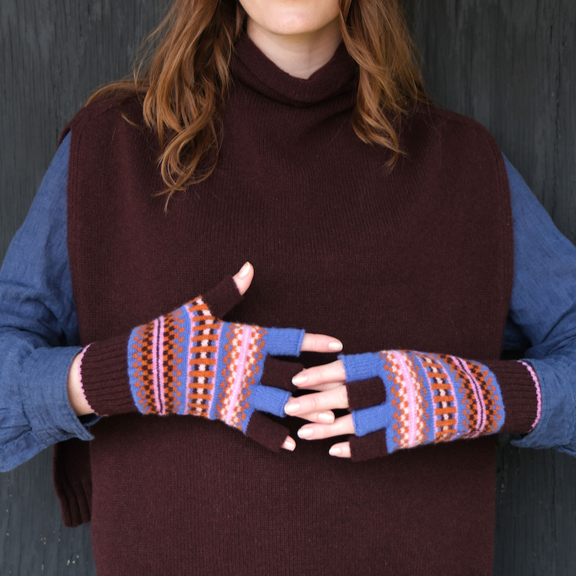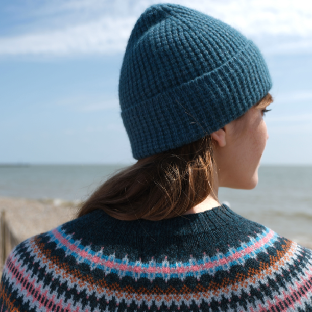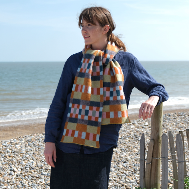 Jess Quinton trained in knitwear at The Royal College of Art, and then worked for the fashion house Missoni, colour and pattern being a big part of her DNA. Coastal Suffolk is also a big inspiration, and the backdrop of many of the brand’s campaigns. It is in Jess’ Suffolk studio that the initial sketches and mood boards are made, this is a slow and thoughtful process before she creates the colour-ways and knits the pattern swatches. Many different colour and yarn combinations are tested throughout the design stage, always referencing initial mood boards containing all tonal colour and stitch ideas. Natural mineral brights chime against rich dark base notes. Graphic patterns counterbalance calming textures and earth tones.