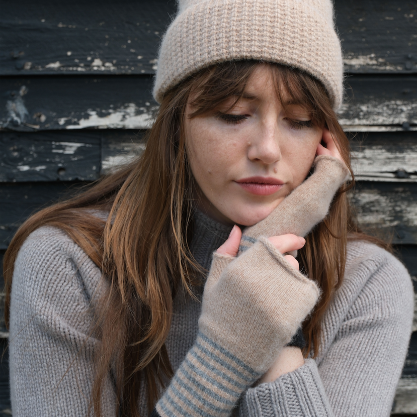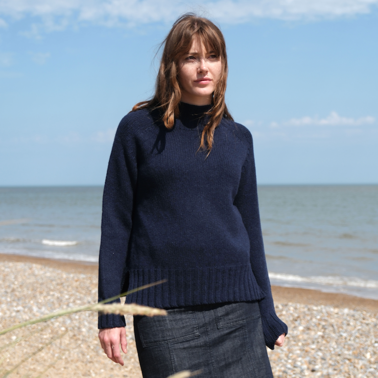 The wools are spun by an English family mill that has been running since 1766. This long succession has enabled valuable knowledge to be passed down through the generations to create a product of the softest and most superior quality. Working with skilled artisans and craftspeople to promote traditional techniques, preserve cultural heritage and support small-scale production practices is a founding principle of the conscious brand. The knits are only made in small quantities since the craft is labour intensive. Once the collection is finished, it is photographed in Suffolk amongst the natural landscape it was inspired by.