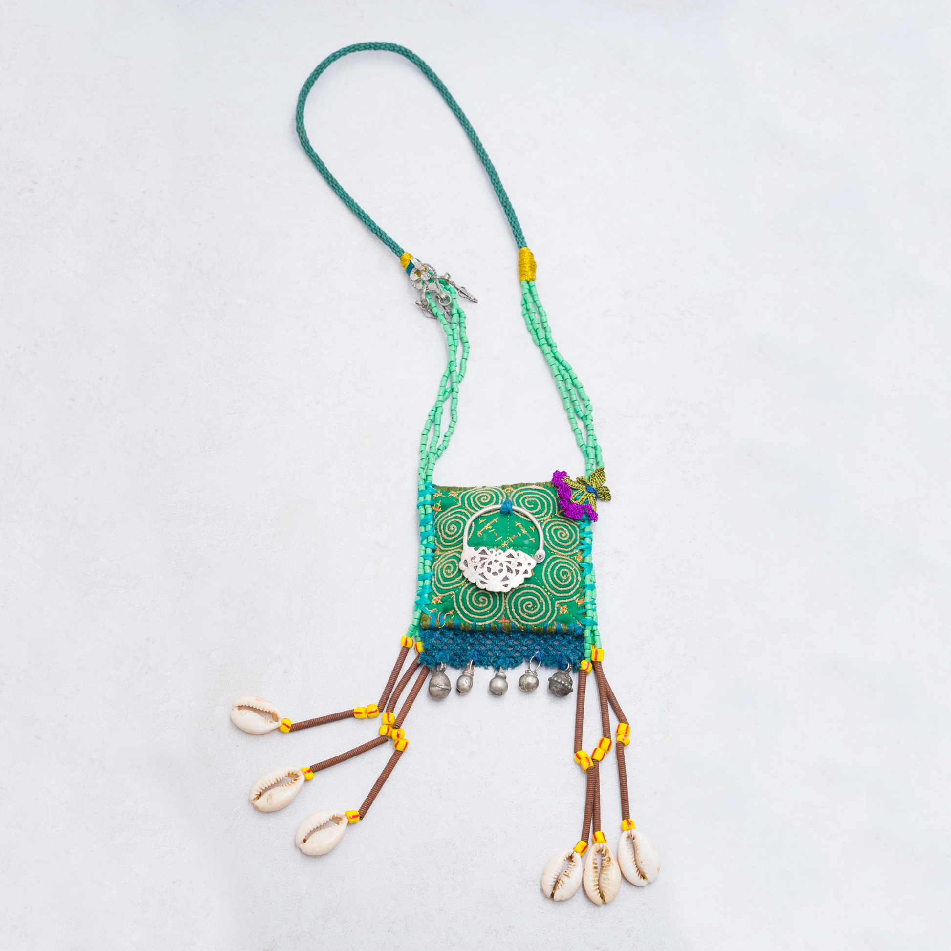 This necklace brings together a curated selection of materials collected from different cultures and traditions. Each bead, thread, and pendant is chosen for its history and texture, creating a composition that feels both timeless and contemporary.