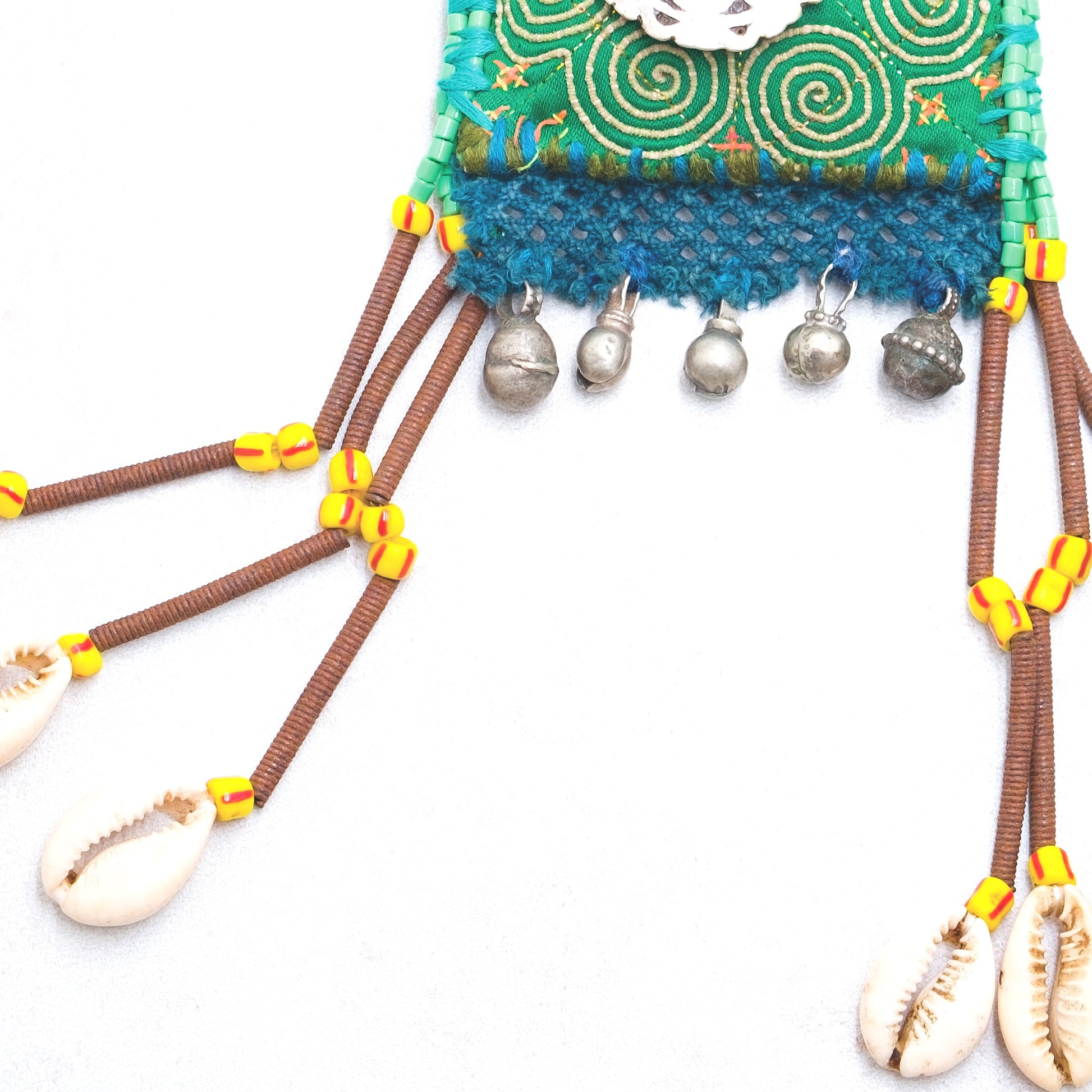 Entirely handmade, the piece reflects a dialogue between craft and memory — where fragments of diverse origins are reassembled into a new narrative. The natural patina of the materials and the irregularities in form and colour are integral to its character, echoing the tactile language of tribal ornamentation.
