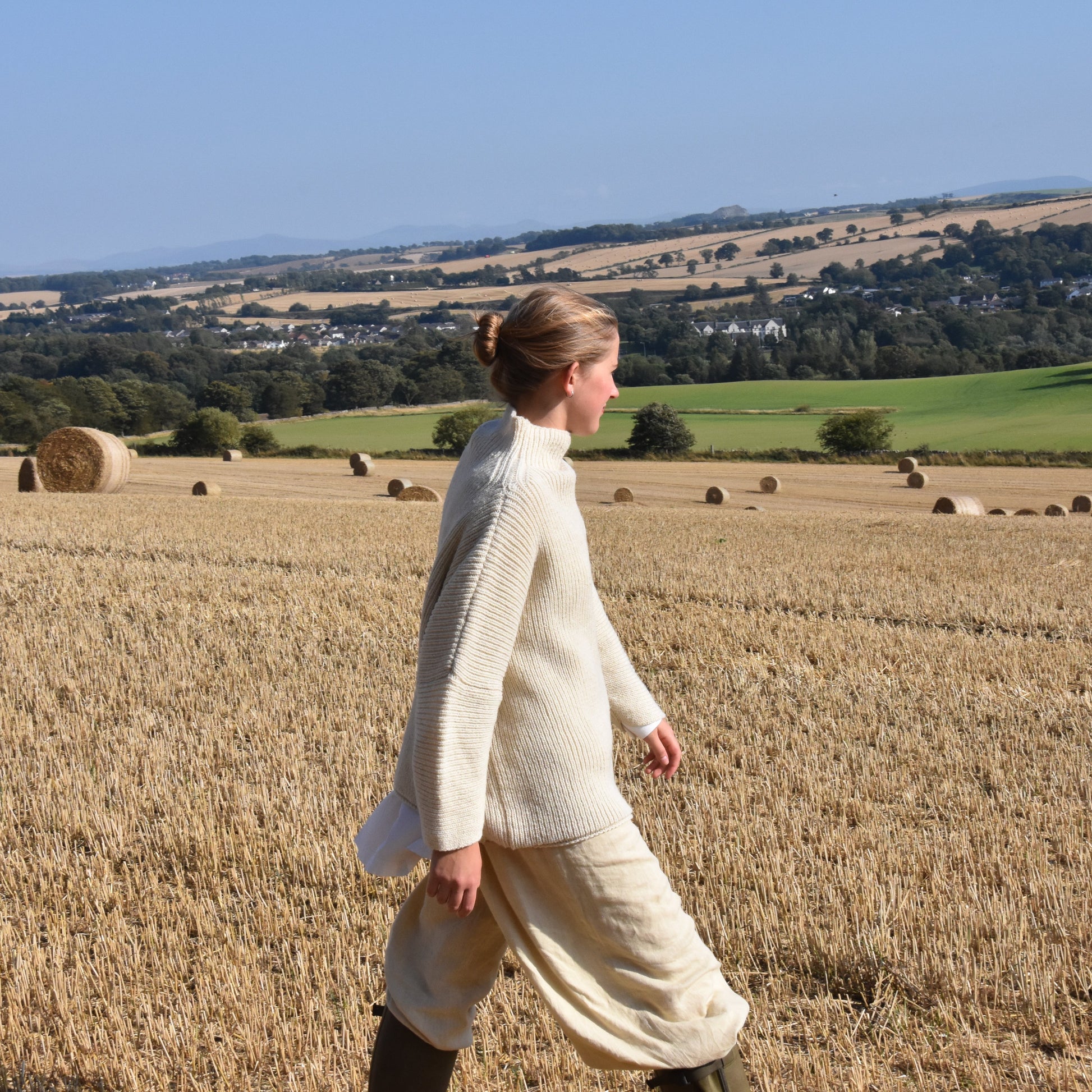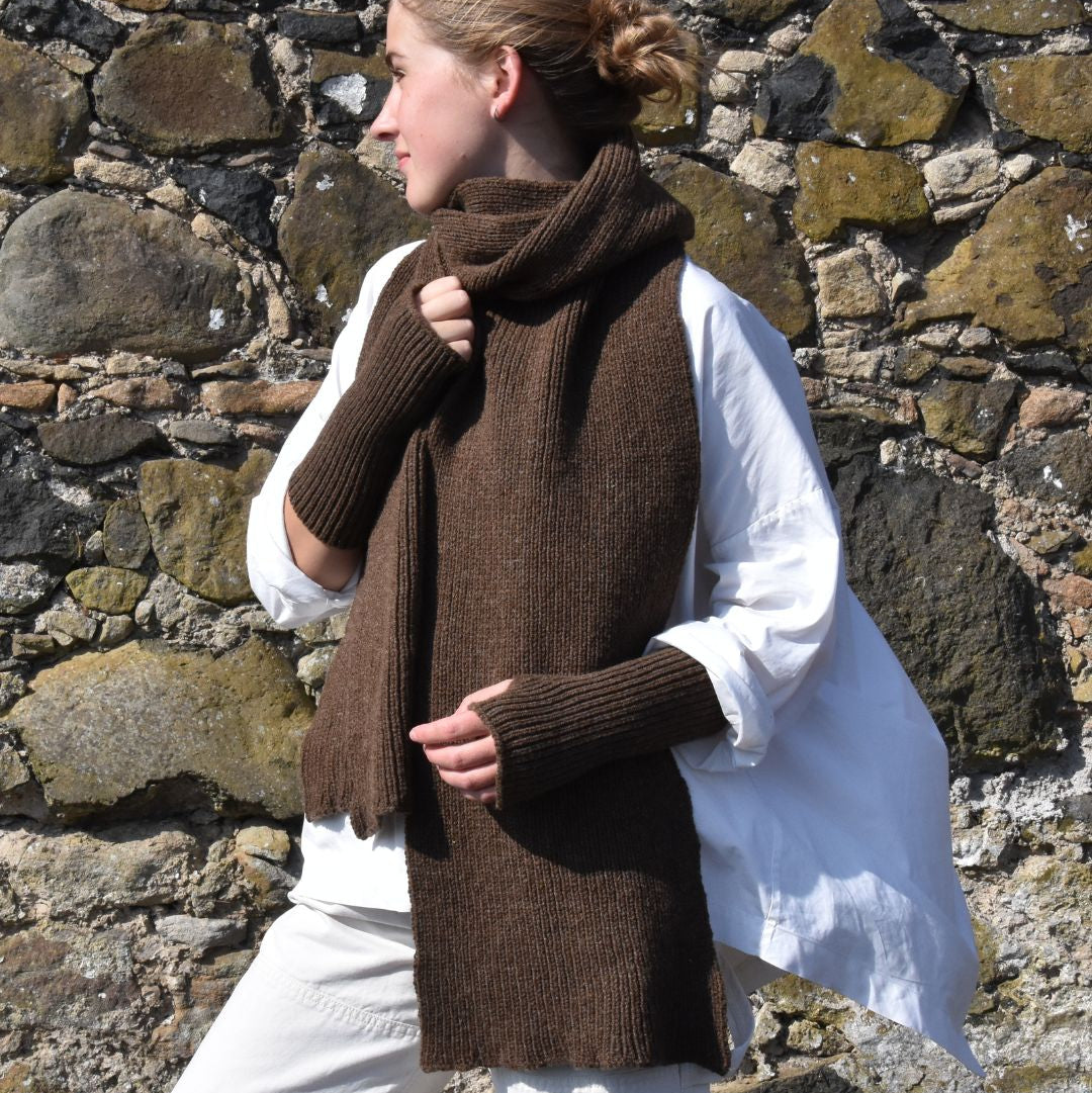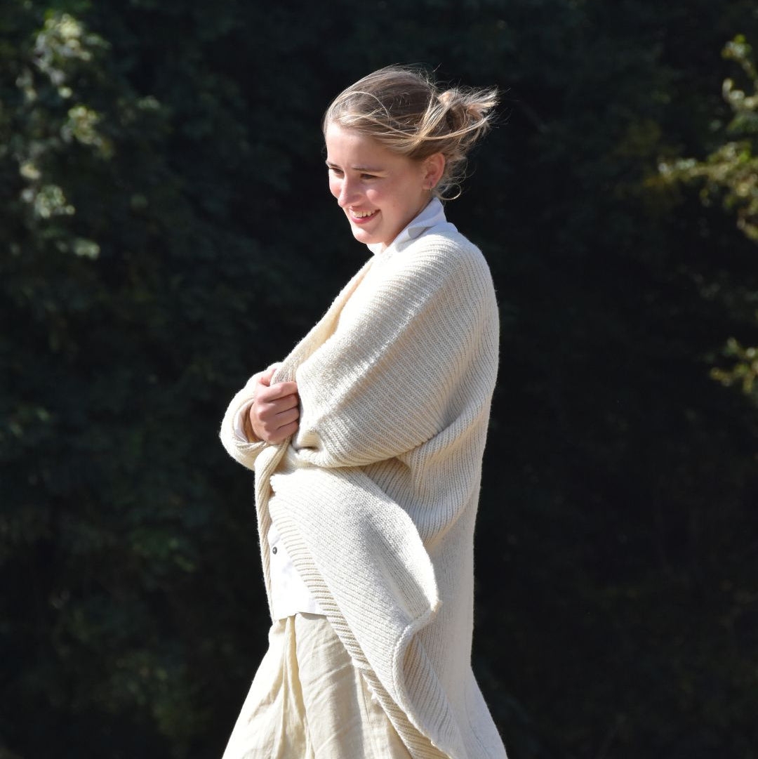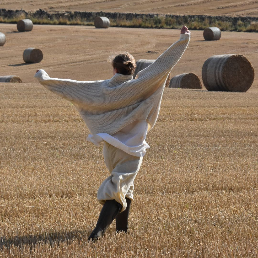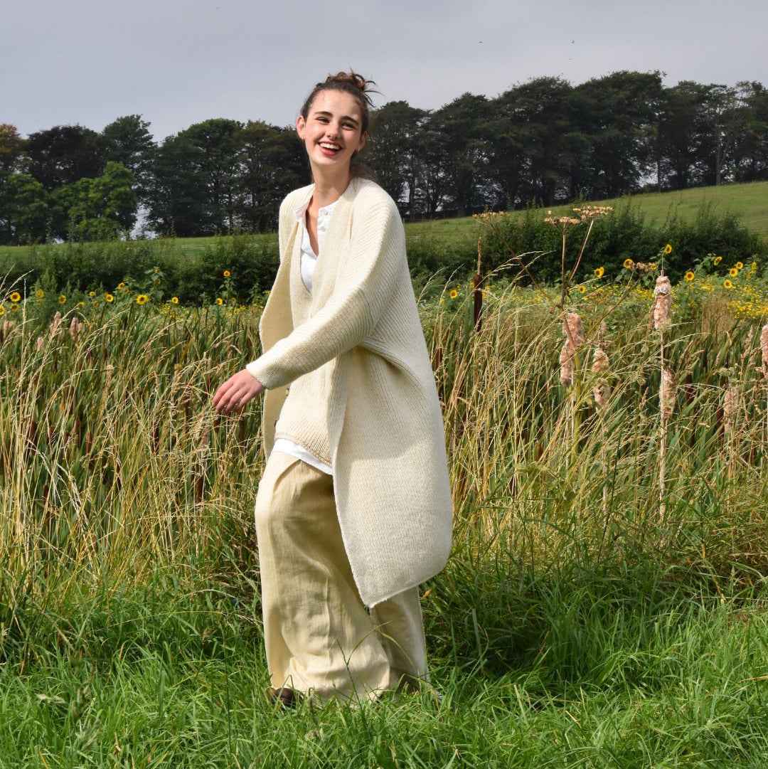 Each year’s collection—what she calls The Vintage Years—is shaped by the natural variations of the flock, the land, and the seasons. The colours, textures, and weight of the wool change with each passing year, making every piece impossible to repeat. This means every jumper, cardigan, scarf, hat, or pair of mitts is part of a limited, collectible edition—truly one of a kind. Her designs are a modern take on Scotland’s knitwear traditions, created with slow, thoughtful production in mind—pieces made to be worn, loved, and passed down.