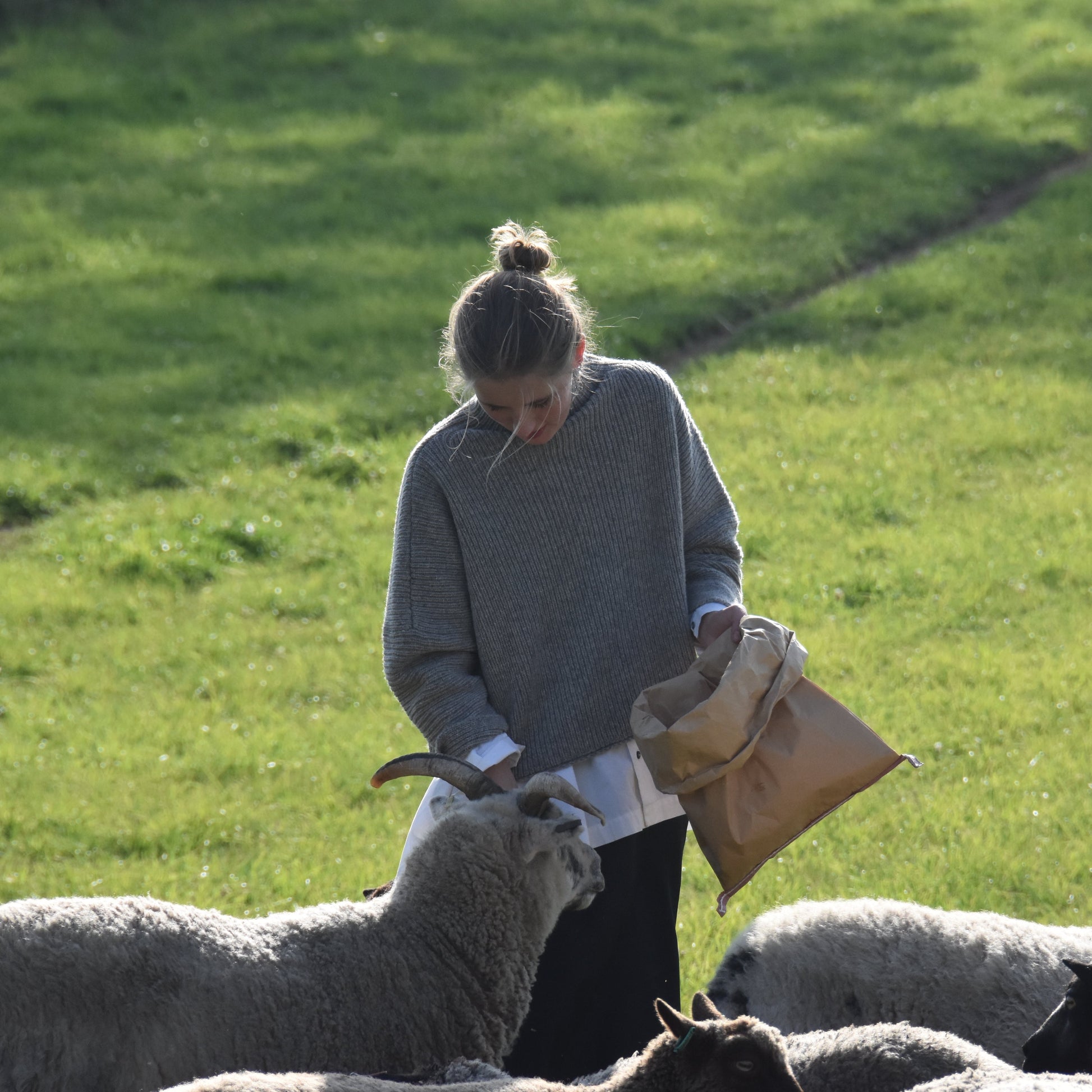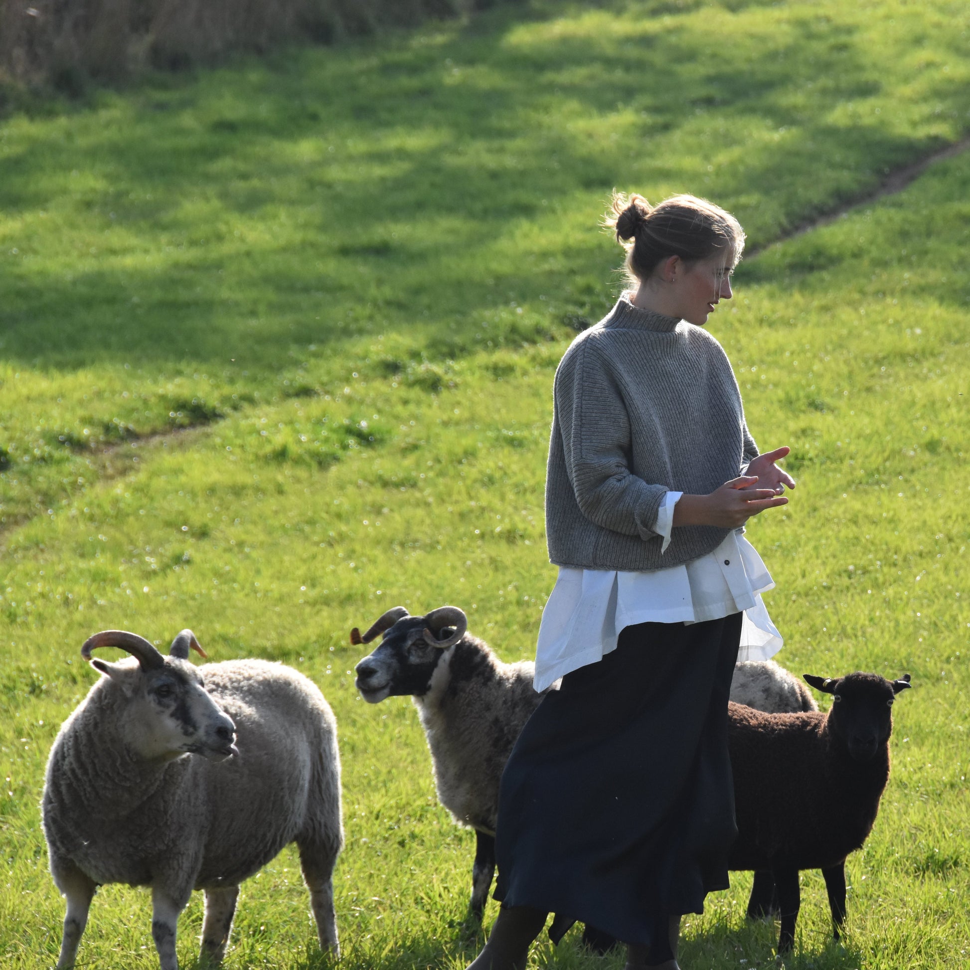 Lindsay Girvan is a designer, knitter, and shepherd. From her farm, Bonnytoun Farm in Linlithgow, Scotland, she creates Future Vintage—a knitwear collection crafted entirely from the wool of her own pedigree Shetland flock. Her connection to textiles and craftsmanship is deeply influenced by her family history. Her grandmother, from Aberdeen, worked in a spinning mill and passed down a deep love for handmade textiles to her mother, and subsequently to Lindsay.
