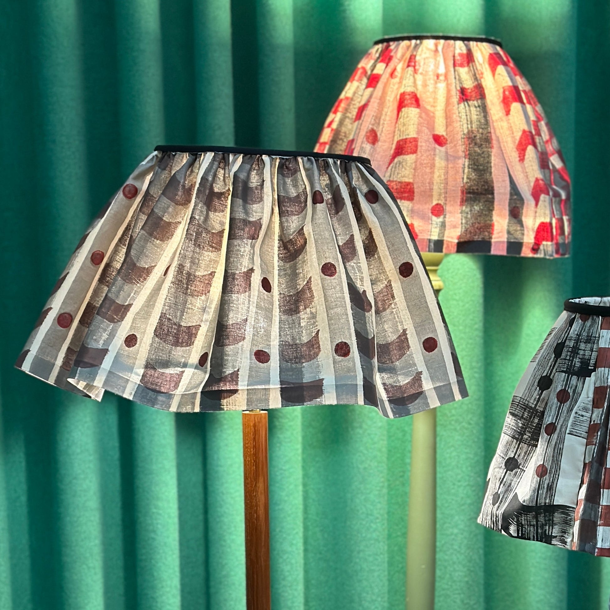 Founded by designer-maker Lottie Cole, the work is shaped by an appreciation of material and form. Each lampshade is constructed using high-quality natural cottons or linens, carefully sewn and assembled to ensure a refined finish. With features such as gathered or pleated designs, soft neutral palettes or bolder print accents, the collection stands out for its professional aesthetics tailored for both studio and living spaces.