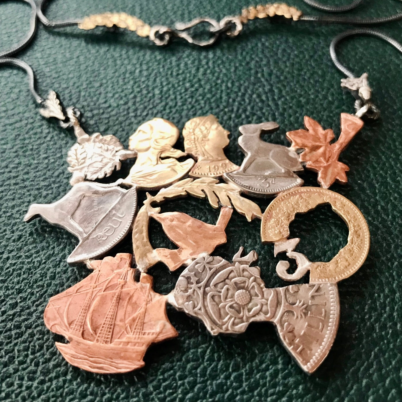 Having just celebrated 25th year in business, it has always been important to Rachel Eardley to create treasures that come from materials that have already lived a life & through Rachel’s creativity can live a new one. All of Rachel Eardley’s work is playful & has a strong illustrative theme. Working with decommissioned coins from around the world, Rachel intricately hand-cut the stunning imagery already on them, making jewellery that has a story to be cherished, told & passed on. Each piece of jewellery comes in a hand-illustrated box with all the details of the coins used to make it, so its original history is recorded, finishing the perfect heirloom gift. Rachel also uses her line drawing to embellish found objects, sketching onto old plates & hand stitching on vintage fabrics. Her work can be found in homes all over the globe & she continues to enjoy creating from her studio in the West Country.