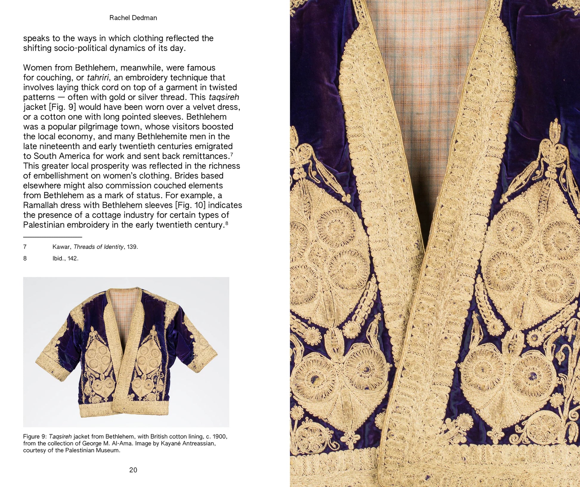 Rachel Dedman is a curator, writer and art historian whose research investigates the material and political lives of things—especially within the Global South. Since 2019 she has been the Jameel Curator of Contemporary Art from the Middle East at the Victoria & Albert Museum in London, and has curated major exhibitions including Material Power: Palestinian Embroidery. Her work on tatreez and Palestinian textile arts brings out how embroidery functions as memory, resistance and making.