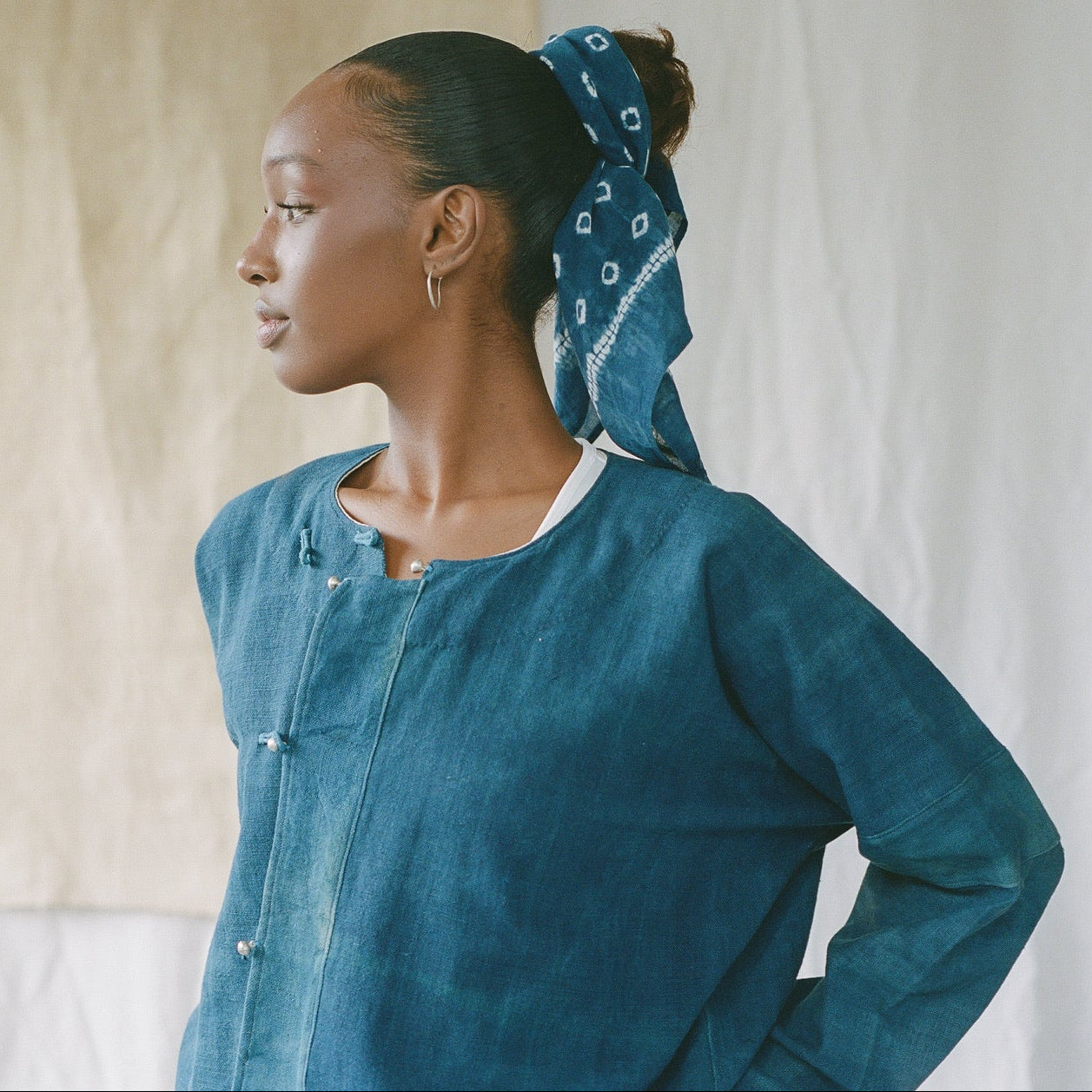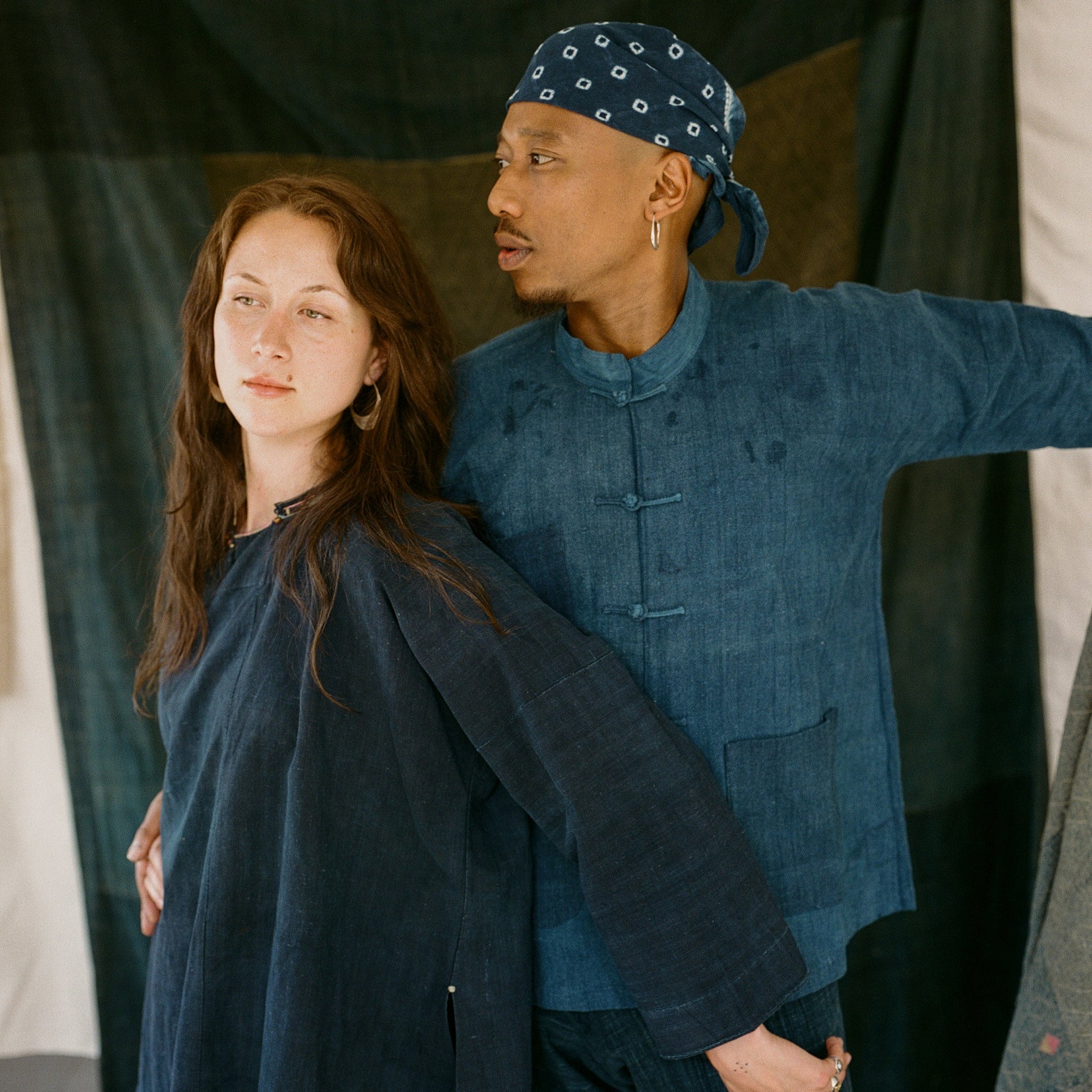 Environmental impact is central to the creation of their embroidered jackets. All materials, particularly cotton and indigo, are homegrown without pesticides in a village in North Vietnam. The entire process, from cultivating the cotton to creating the cloth, takes two years. The fabric is then dyed twelve times with natural indigo, resulting in rich blue jackets and clothing. The intricate embroidery on these pieces portrays scenes of village life: rice paddies, children, families, trees, plants, and symbols of fertility.