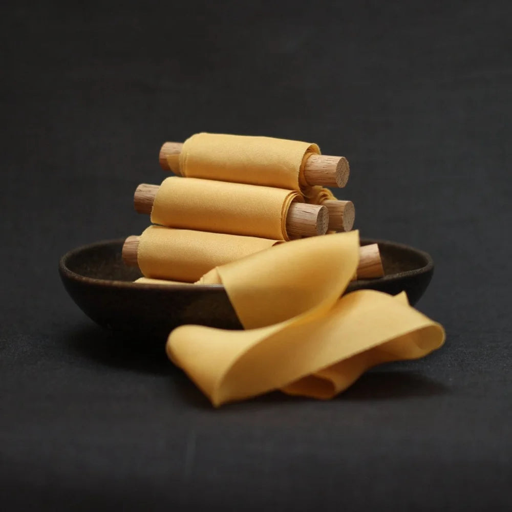 We make small batch, slow crafted, hand dyed ribbons, accessories and homewares using the alchemy of 100% plant based dyes, which are natural and non toxic.