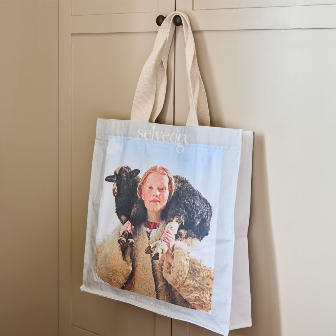 100% cotton tote bag with issue Issue 108 Farm cover image. Same digital print on both front and back of bag (no print on gussets). Handles natural nivad tape. Mobile gusset pocket, 15cm height hanging pocket and taka stitch key loop. Bag measurements: 44 h x 44 l x 12 w (cm). Handle measurements 60 l x 5 w (cm).