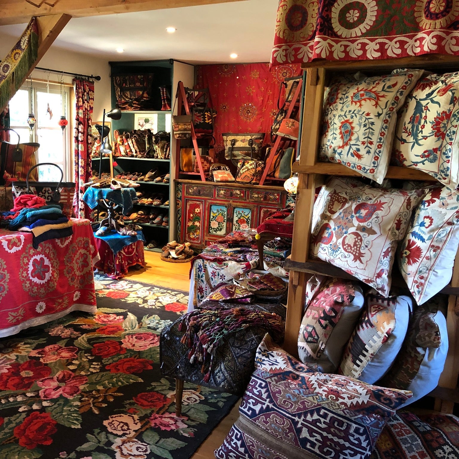 Anne makes several trips each year to Turkey to replenish her collection and meet client demands. In addition to Central Asian textiles, she offers a range of Turkish-made items. Her collection is showcased in her showroom at Plumber Cottage, open by appointment year-round, with special 'Open Showroom' events for full displays. For those unable to visit, she also participates in events across the UK.