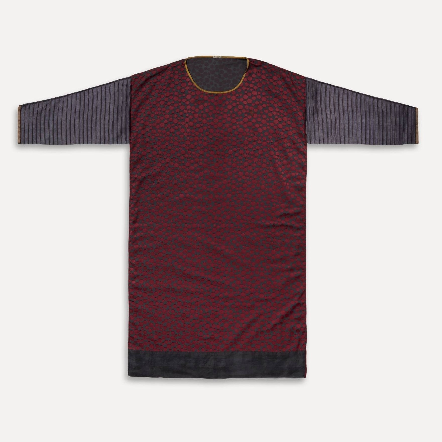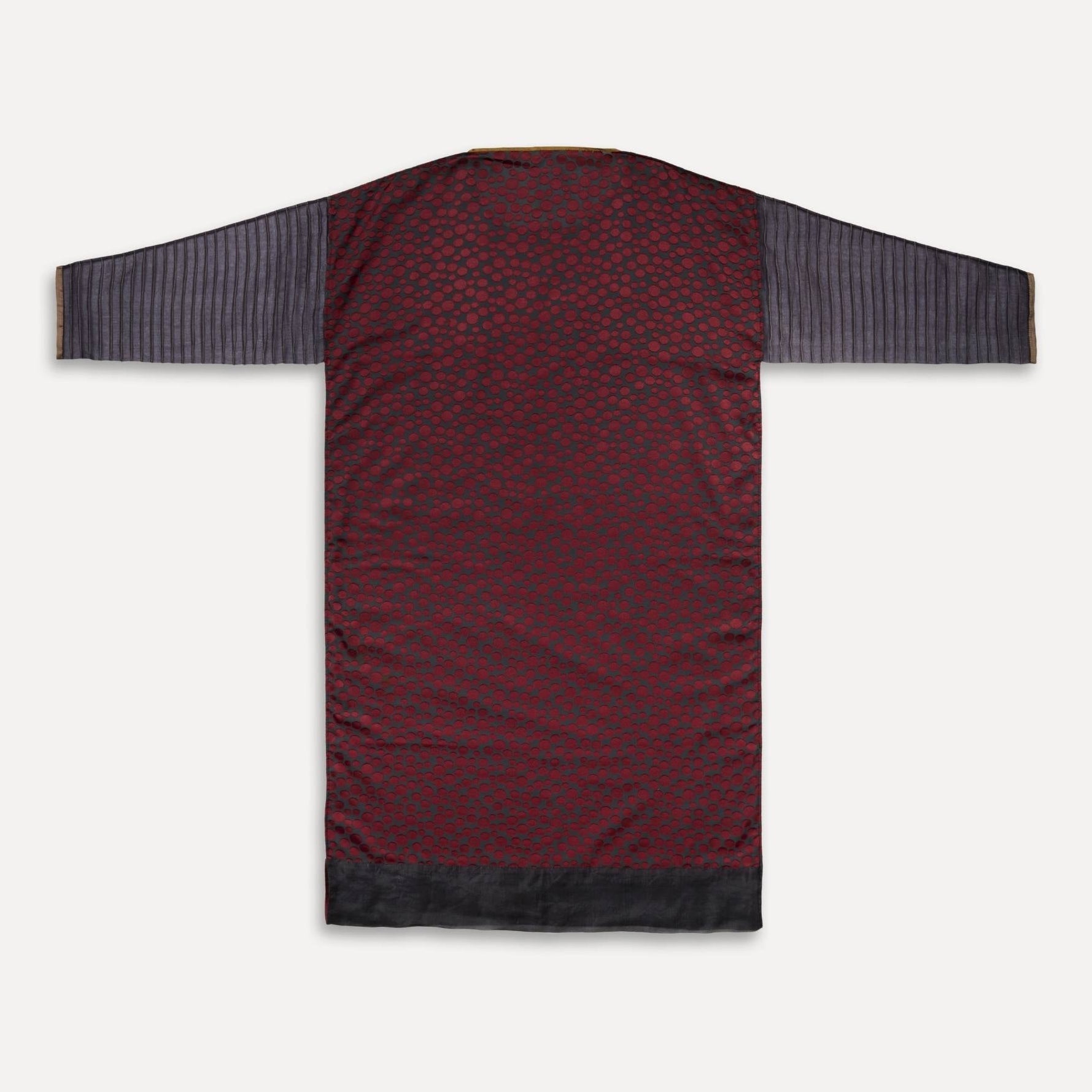 Made in Turkey by Gönül Paksoy, this dress is crafted from an old, woven silk textile, allowing a historic fabric to be reinterpreted through contemporary form. The surface is marked by a dense mosaic-like pattern, revealing the depth and character that come with time-worn silk.