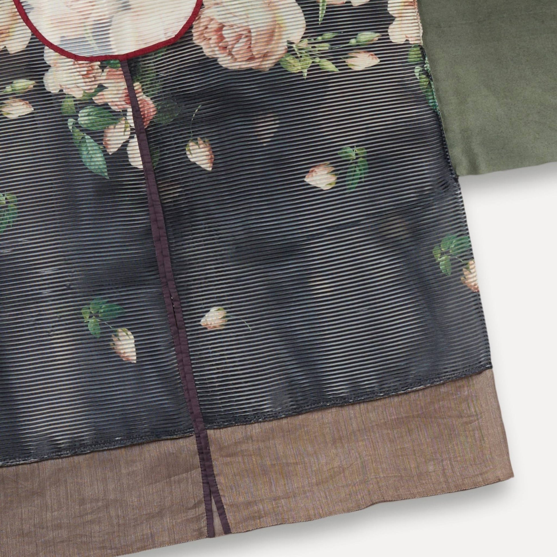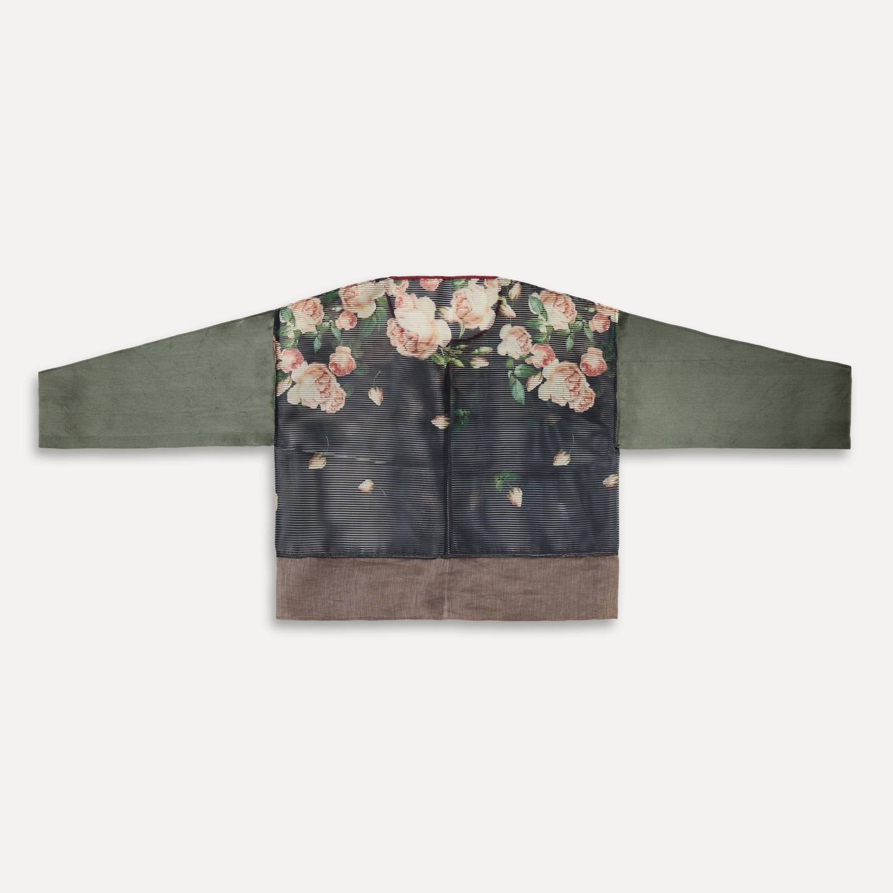 Made in Turkey by Gönül Paksoy, this jacket is crafted from patterned silk combined with raw silk, bringing together contrasting textures within a composed, wearable form. The floral pattern introduces a sense of movement across the surface, while the interplay of materials highlights the structure of the garment.